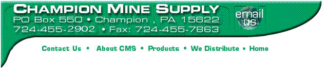 | Champion Mine Supply, Inc. PO Box 550 • Champion, PA 15622 724-455-3163 • Fax: 724-455-7863 Email: Melodie Phillips @ m_phillips@championminesupply.com Paul Phillips @ p_phillips@championminesupply.com |